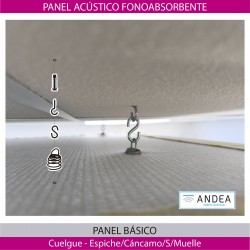 · Incluye herrajes de cuelgue - espiche o taco, cáncamo, “S” metálica para separarlo un poco del techo y un muelle de cuelgue insertado ya de fabrica en el panel.
